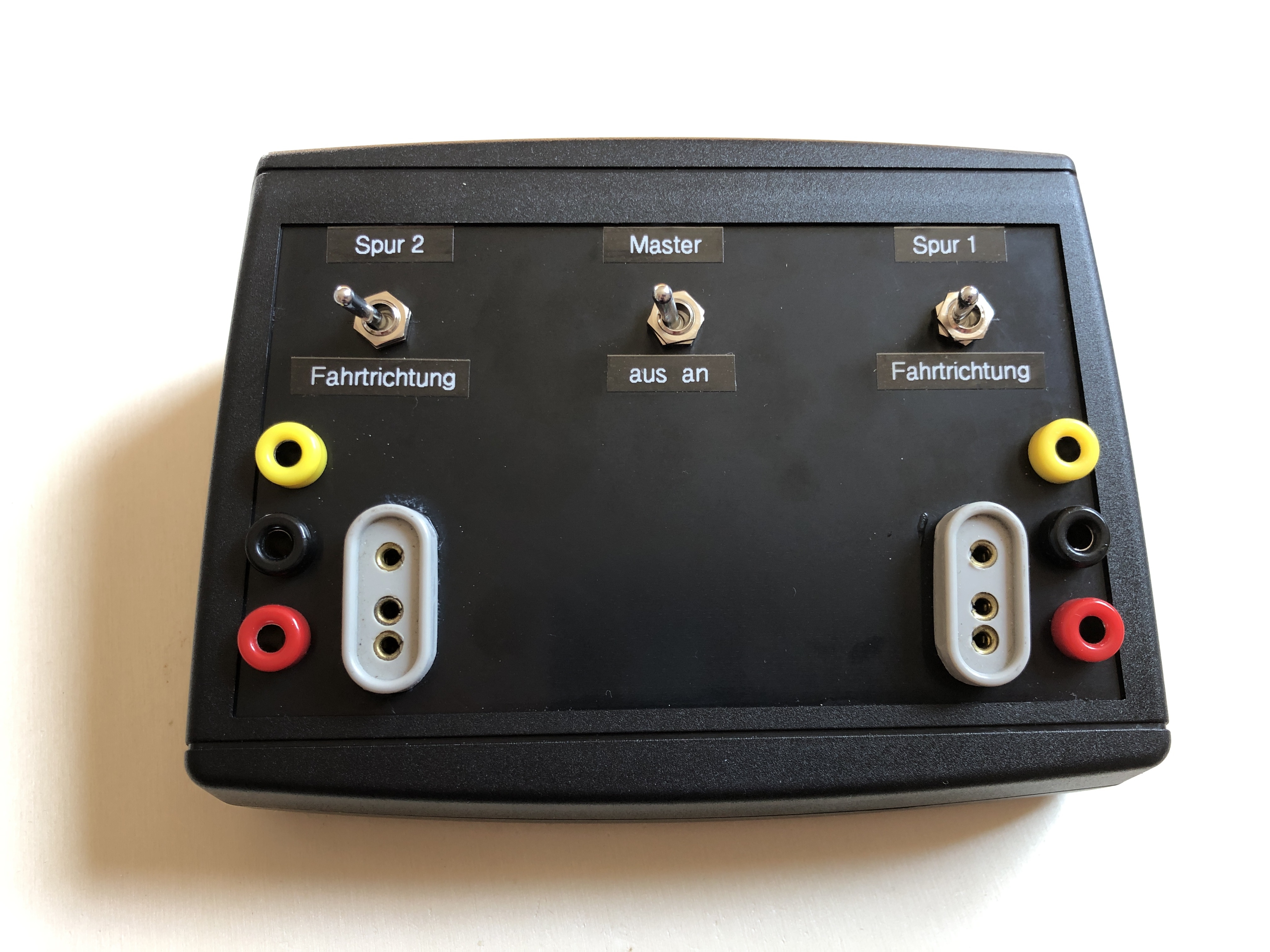 Neben den Anschlüssen für die Regler war mir auch wichtig die Fahrtrichtung umschalten zu können. Ich habe zur Zeit nur eine kleine Bahn mit ca. 12m länge und fahre hauptsächlich alleine. Durch den Wechsel der Fahrtrichtung kommt zusätzliche Abwechslung ins Spiel.