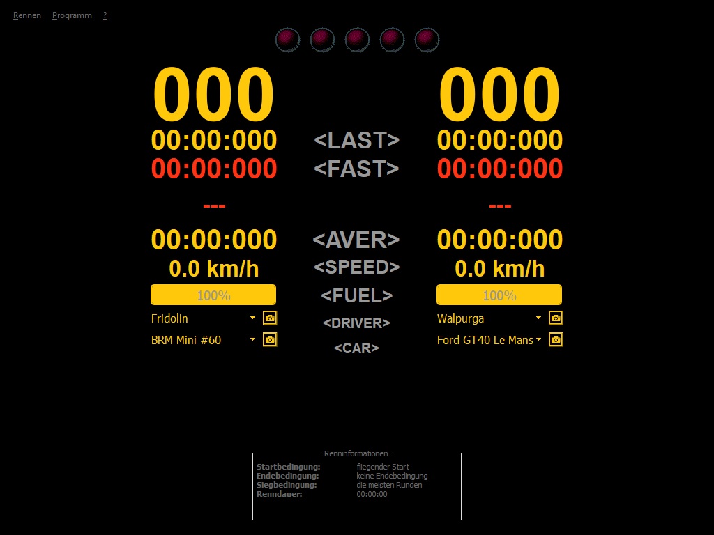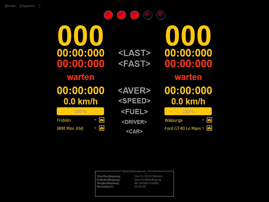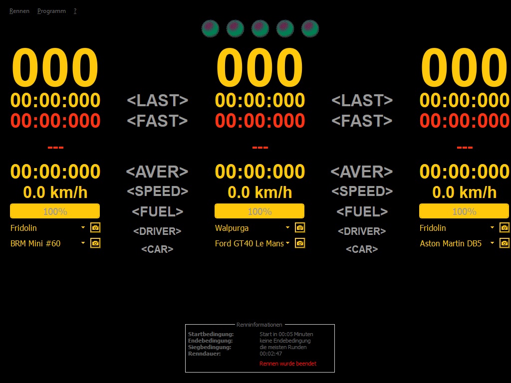 So sieht der Bildschirm bei einer Strecke mit drei Spuren aus.
