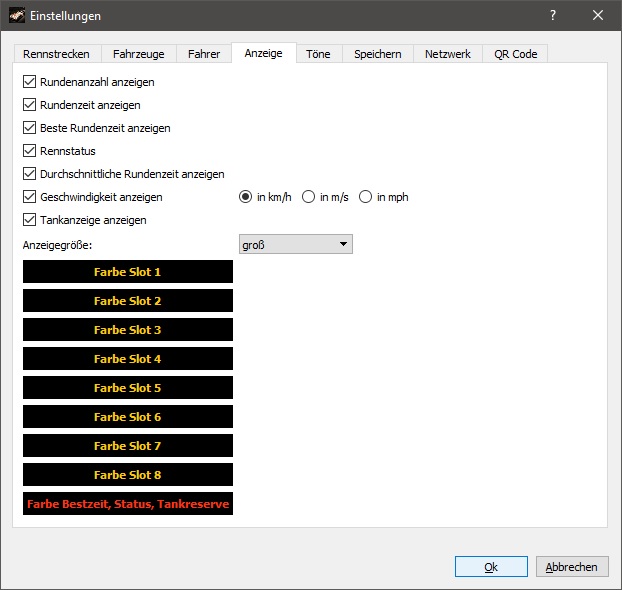 Die Einstellungsmöglichkeiten für die Anzeige.