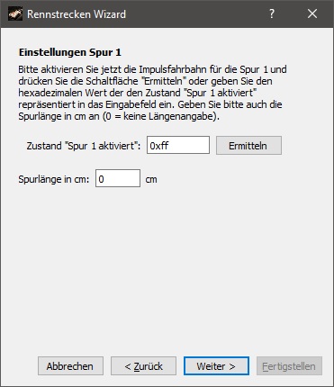 ... und für jede Spur den Zustand bei aktivierter Impulsfahrbahn ermitteln sowie die Spurlänge eingeben - Fertig!
